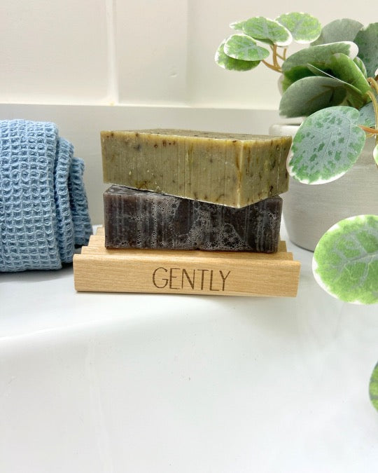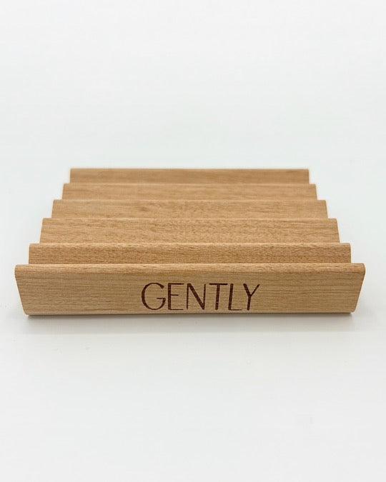 This soap tray holds our Gently Soap bath bars in order to keep the bar dry between uses, keep soap residue off of countertops, and prolong the life cycle of your bar.
